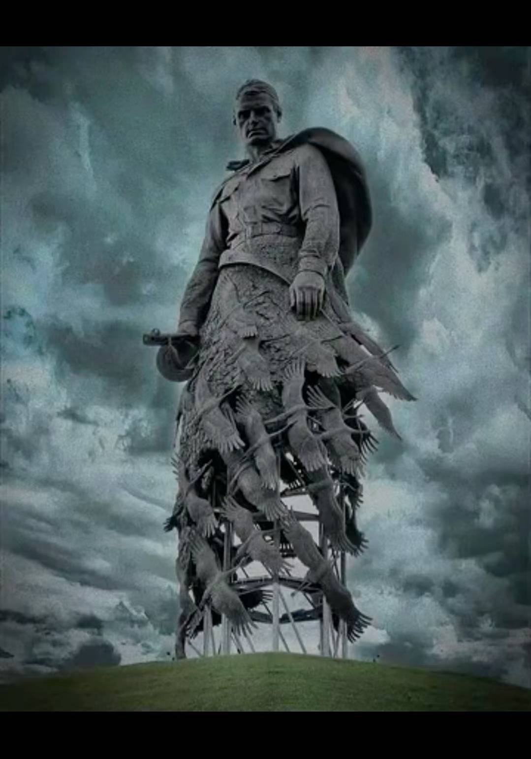 2020年,俄罗斯在勒热夫塑造了这个雕像。士兵的下半身逐渐破碎为鹤群,我很喜欢。